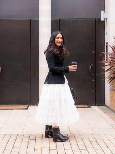 I live in London with my husband, our two daughters, and our French bulldog, Rocco — who insists on being part of every wardrobe edit.